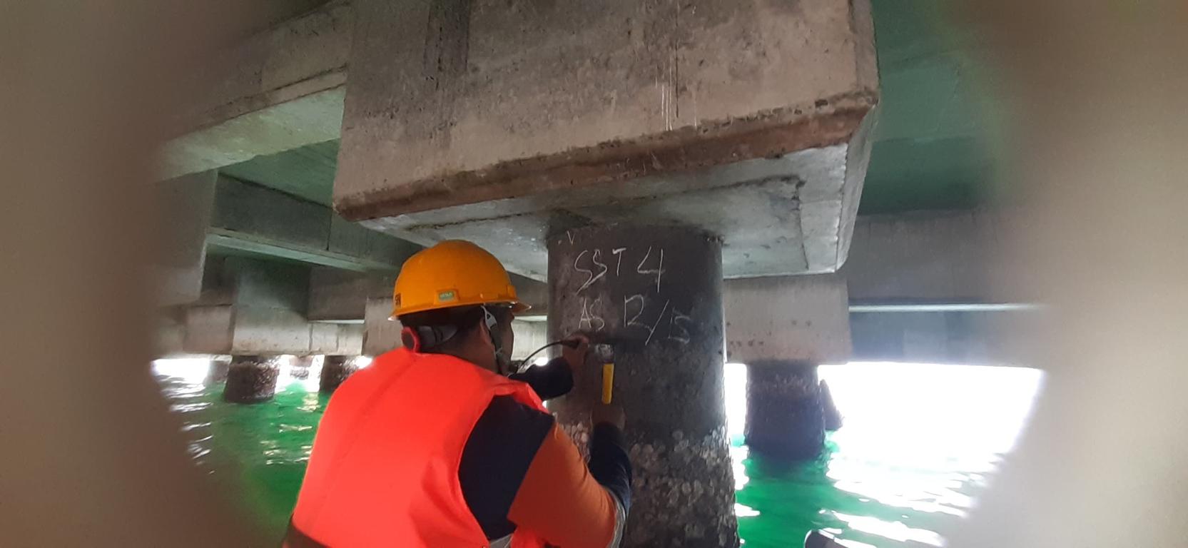 Investigasi pada Jetty G difokuskan pada deteksi dini anomali struktur bawah air (substructure). Di area pelabuhan yang sibuk, tiang pancang menerima beban dinamis tinggi secara terus-menerus. Validasi melalui SST memberikan kepastian teknis bahwa fondasi masih memiliki kapasitas yang memadai untuk menahan beban operasional tanpa risiko kegagalan struktural mendadak.