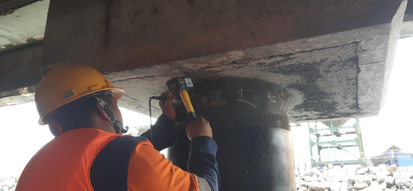 Dengan prinsip pantulan gelombang akustik, tim ahli HESA memetakan kondisi tiang pancang eksisting untuk memastikan tidak ada retakan atau reduksi penampang yang dapat memicu kegagalan struktur dermaga. Hasil asesmen ini memberikan dasar ilmiah bagi pengelola pelabuhan untuk menentukan kapasitas beban aman dan jadwal perawatan preventif aset strategis mereka.