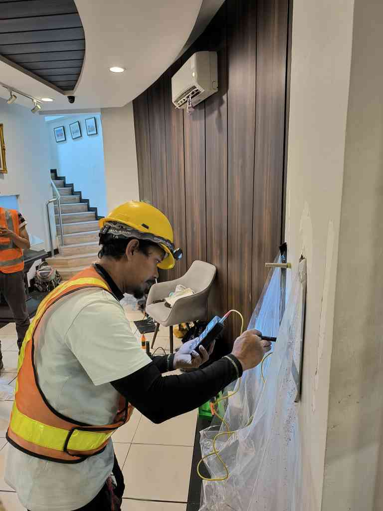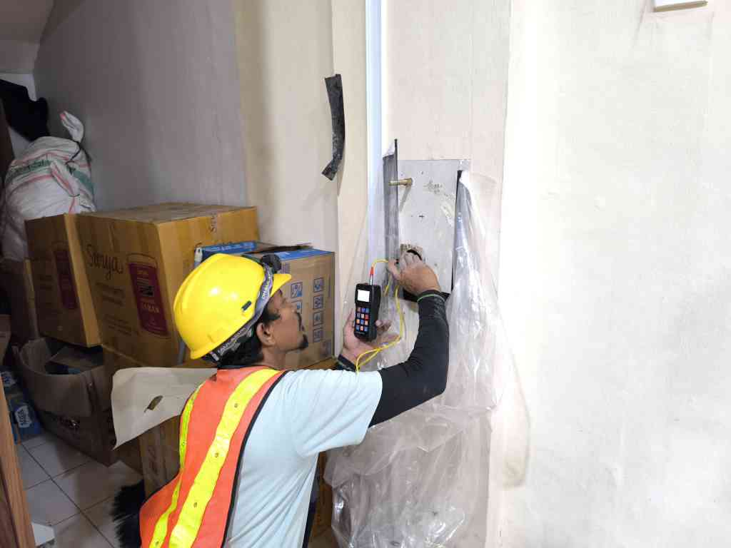 UPVT Cross-Check Uji kecepatan rambat gelombang ultrasonik untuk mendeteksi rongga internal beton. |
