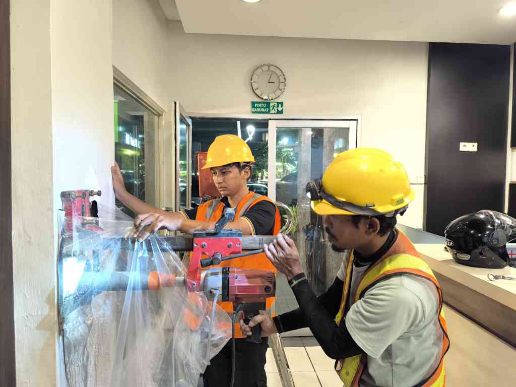 Coredrill Sampling Pengambilan sampel beton untuk validasi mutu tekan di laboratorium secara vertikal. |