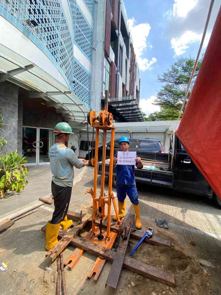 Pengujian beban dinamik untuk menangkap respon getaran gedung dan sondir tanah untuk mengevaluasi stabilitas fondasi terhadap rambatan getaran.