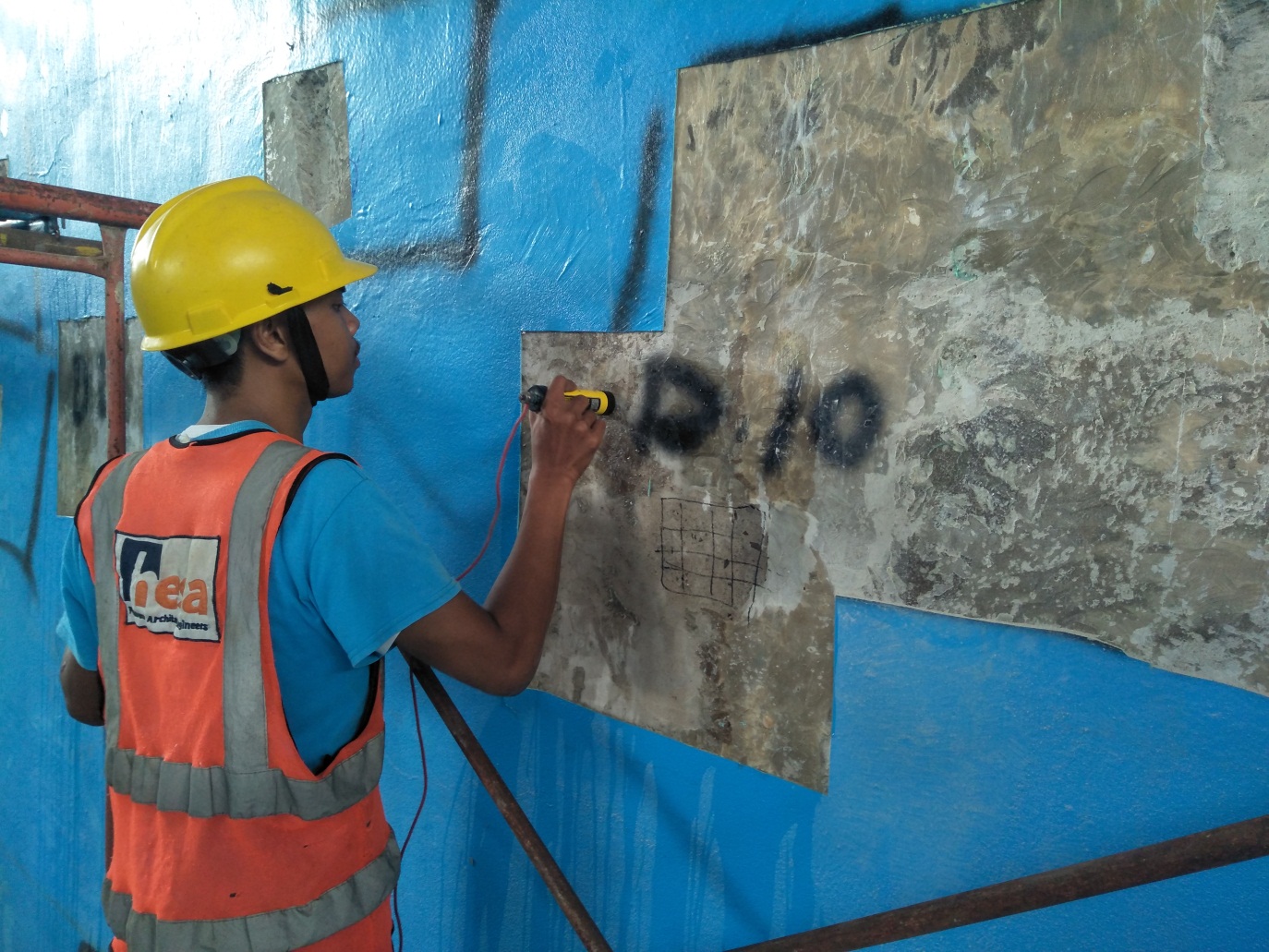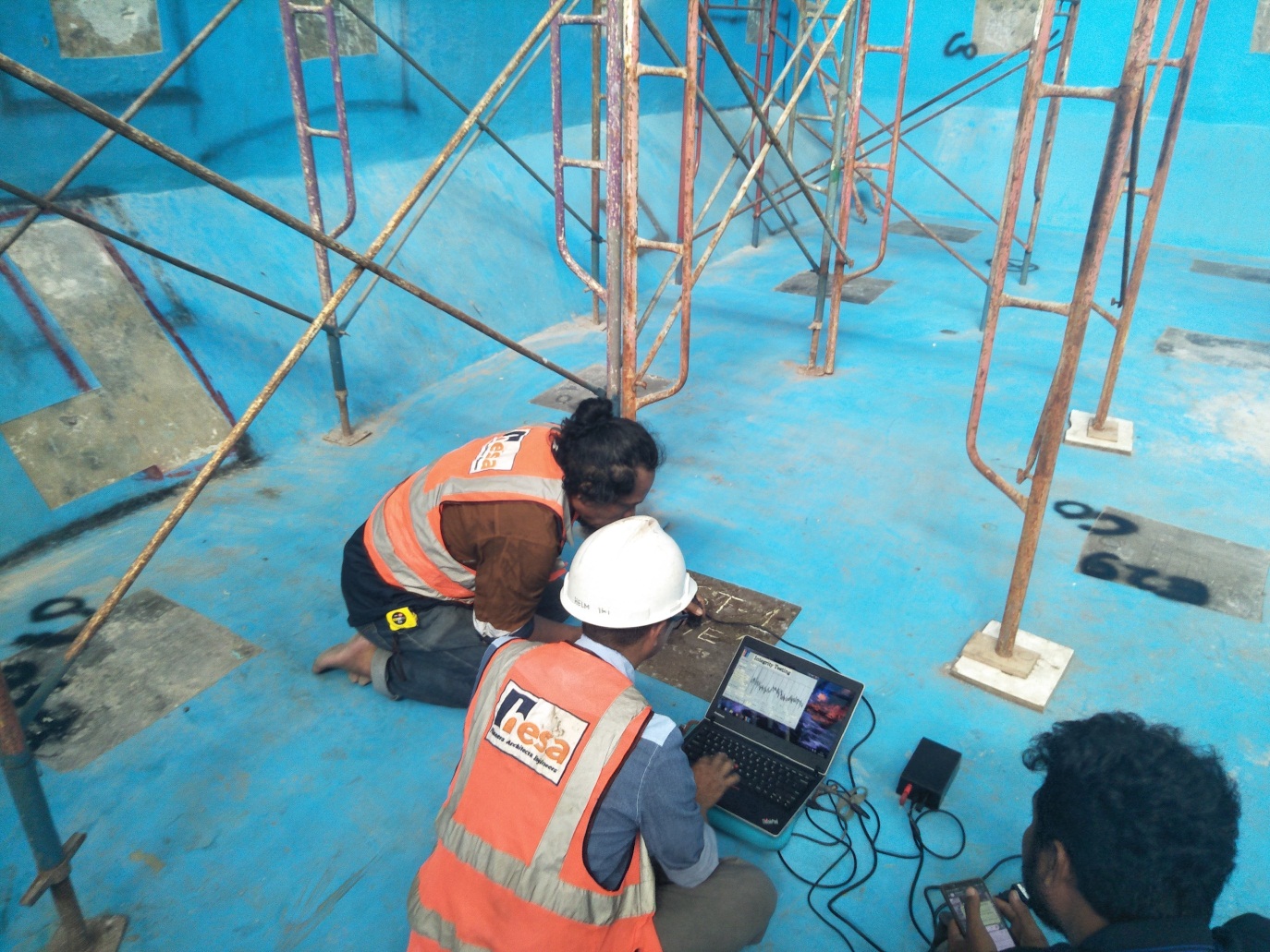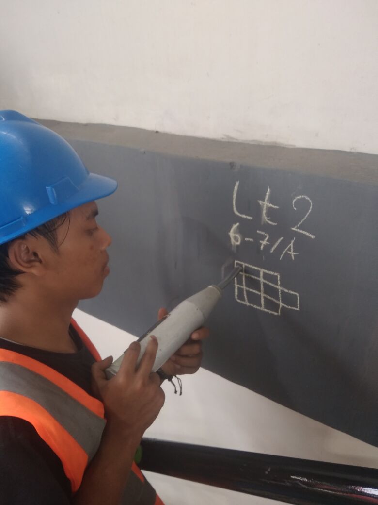 Pengujian yang dilakukan, nmeliputi: Hammer Test, Ultrasonic Pulse Velocity Test, Pulse Echo Test, Half Cell Test, Carbonation Test, Concrete Core Drilling, Covermeter Test, Rebar Scan, Brinell Test Dan Ground Penetrating Radar.
