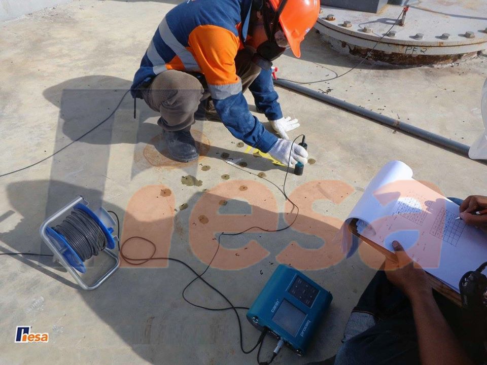 Selain Dimensional Inspection dilakukan pula soil investigation dengan melakukan sondir (Cone Penetrometer Test, CPT), boring, Standard Penetration Test (SPT), Undisturbed Sampling (UDS), dan uji laboratorium mekanika tanah untuk mendapatkan index properties dan engineering properties dari tanah di sekitar lokasi tanki.