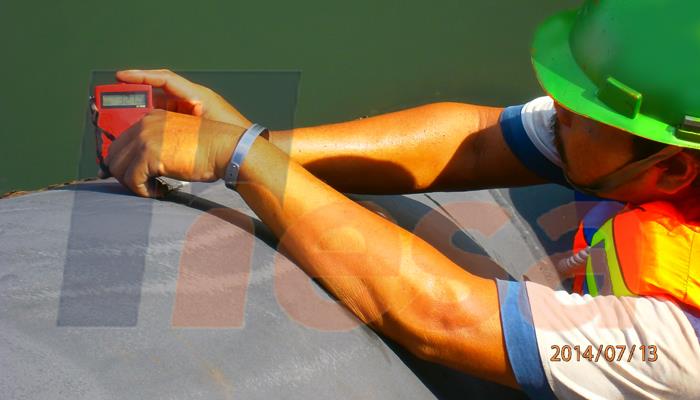 Dimensional inspection dilakukan dengan menggunakan alat total station dan autolevel, yang dilakukan baik dari dalam maupun dari luar tanki.