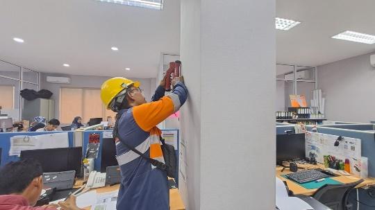 Pemeriksaan kondisi struktur dan integritas beton tiang pancang Mesjid apung Pagatan