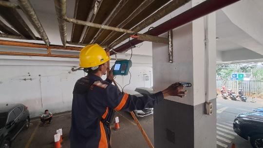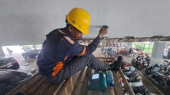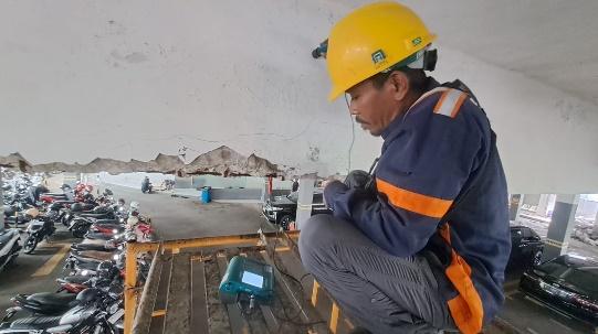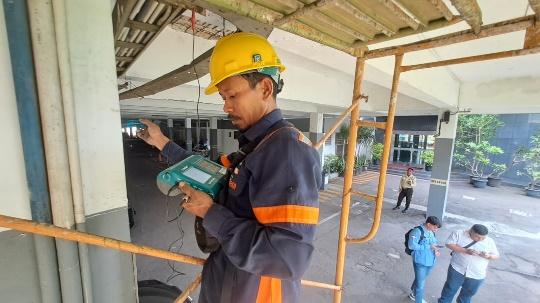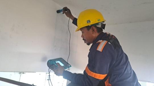 (Proses pengambilan sampel beton inti dan verifikasi teknis di lokasi warehouse Tangerang)