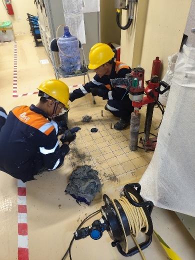 | Tujuan Pekerjaan | Melakukan pengambilan sampel silinder beton (core) pada fasilitas hulu migas untuk pengujian kuat tekan laboratorium guna memverifikasi integritas struktural lantai area pendukung operasional migas. | |