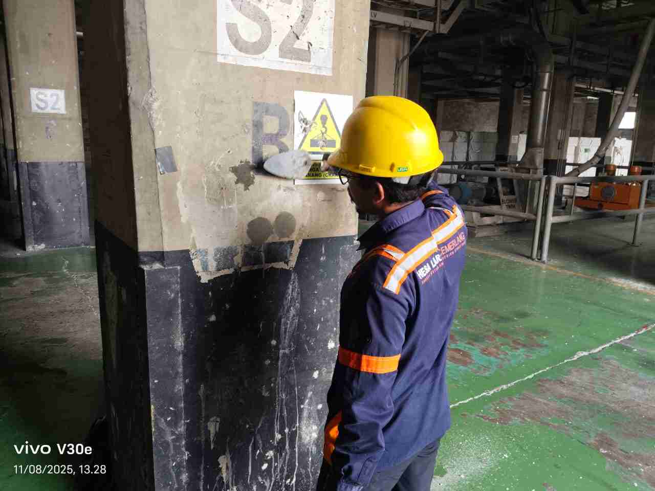 Identifikasi Lokasi Pengeboran Pemeriksaan visual permukaan pelat lantai warehouse untuk menentukan zona pengambilan sampel silinder yang representatif terhadap kualitas beton secara keseluruhan di area gudang. |