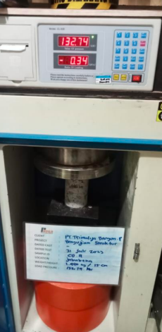 Kegiatan pengujian di Jababeka ini bertujuan untuk menyediakan data teknis mutu beton aktual bagi PT Trimulia Bangun Persada. Melalui kombinasi pengujian lapangan (Hammer Test & Coredrill) serta pengujian laboratorium (Crushing Test), HESA menyajikan parameter kekuatan material yang objektif guna mendukung pengawasan kualitas pada komponen struktur yang diuji.