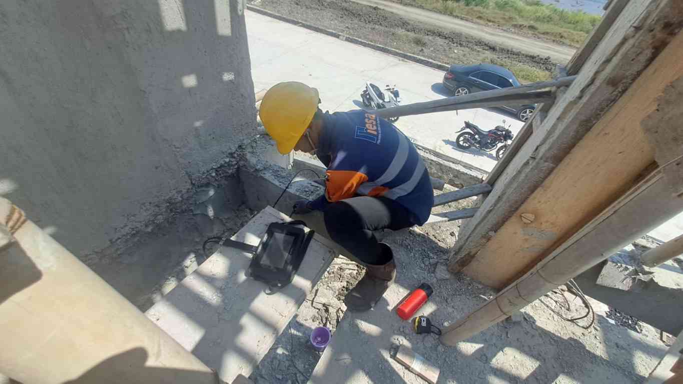 Pengukuran kecepatan gelombang ultrasonik guna memverifikasi tingkat homogenitas dan kepadatan internal elemen kolom struktur.