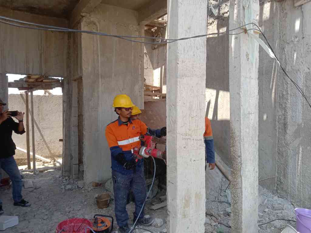Pelaksanaan UPV test untuk mengukur densitas beton dan core drilling untuk mendapatkan sampel fisik yang merepresentasikan mutu beton keseluruhan.