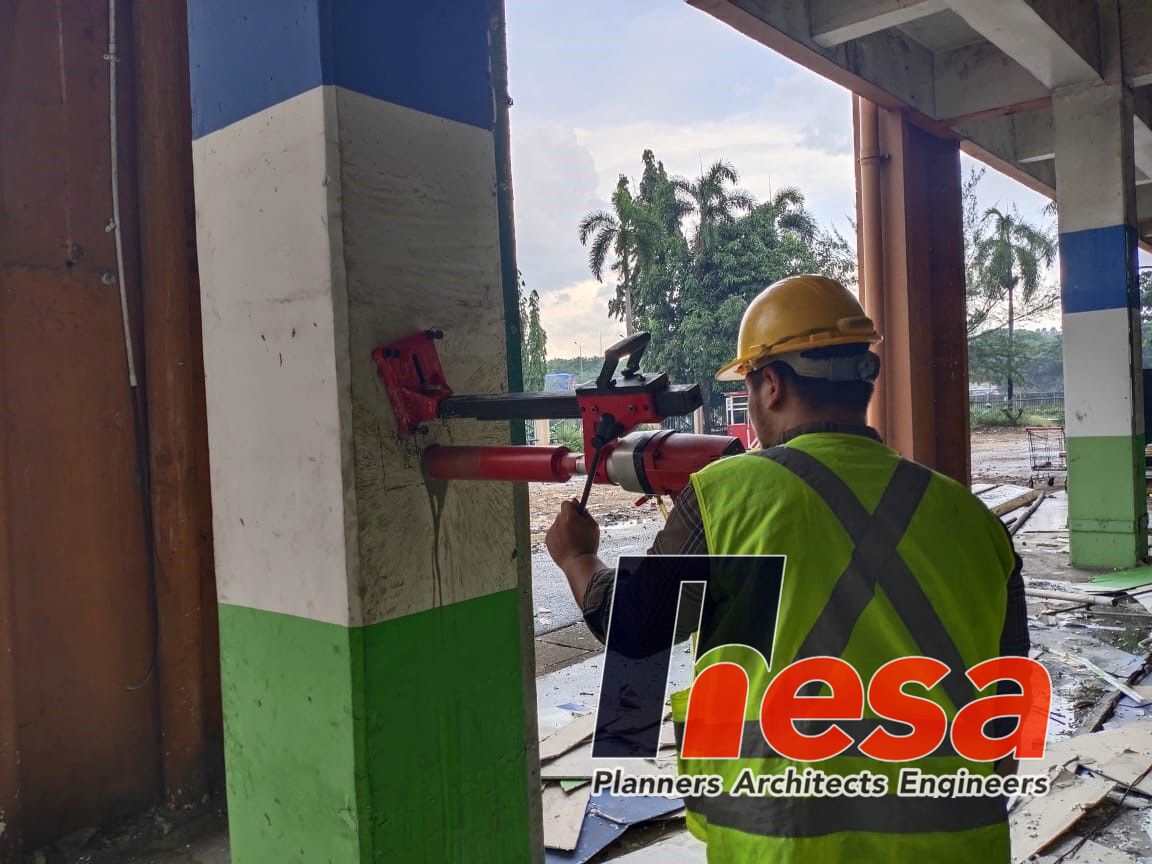 Tujuan: Melakukan testing komprehensif untuk mengevaluasi kekuatan beton, integritas struktur, deteksi cacat tersembunyi, dan assess risiko korosi. Ini adalah fase paling intensive dari audit.