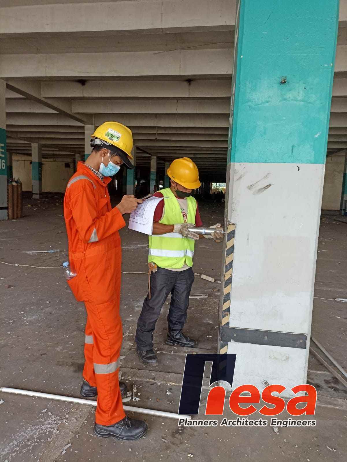 Tujuan: Melakukan testing komprehensif untuk mengevaluasi kekuatan beton, integritas struktur, deteksi cacat tersembunyi, dan assess risiko korosi. Ini adalah fase paling intensive dari audit.