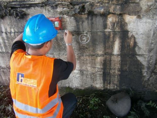 - verifikasi geometri serta kedalaman pondasi dengan Ground Penetrating Radar (GPR).