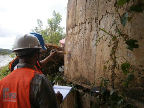 Pengujian lapangan dilakukan untuk memverifikasi kondisi fisik dan material struktur melalui metode destruktif maupun non-destruktif, meliputi: