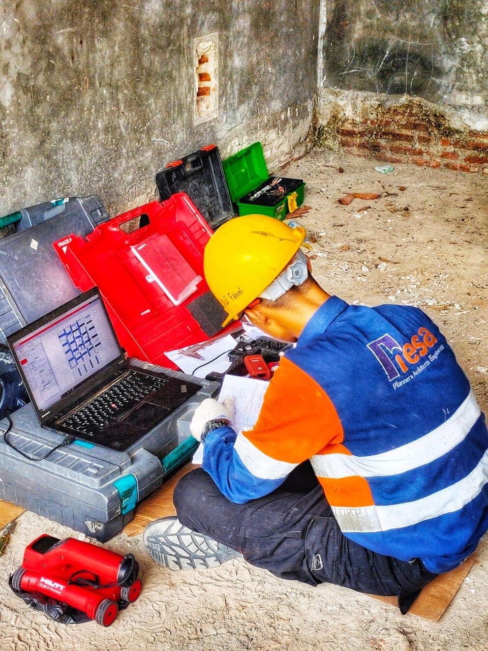 Berikut adalah dokumentasi teknis kegiatan asesmen struktur yang dilakukan oleh tim ahli HESA di site Petrosea Batu Kajang: