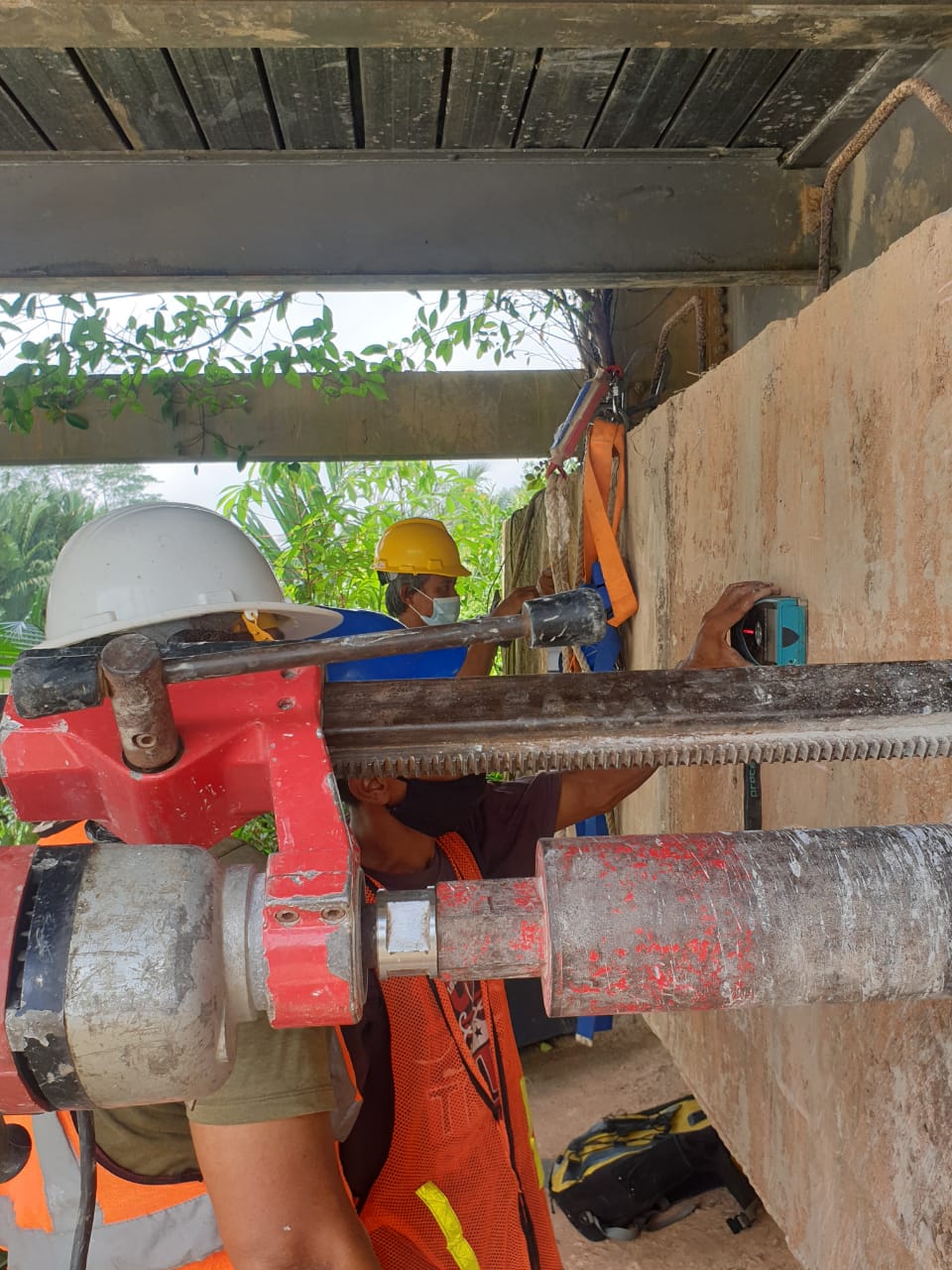 Proses pengambilan contoh beton menggunakan alat bor intan