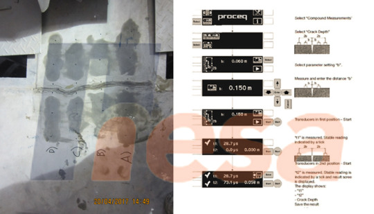 Untuk mengetahui kedalaman keretakan dilakukan 2 (dua) kali pengukuran rambatan gelombang.