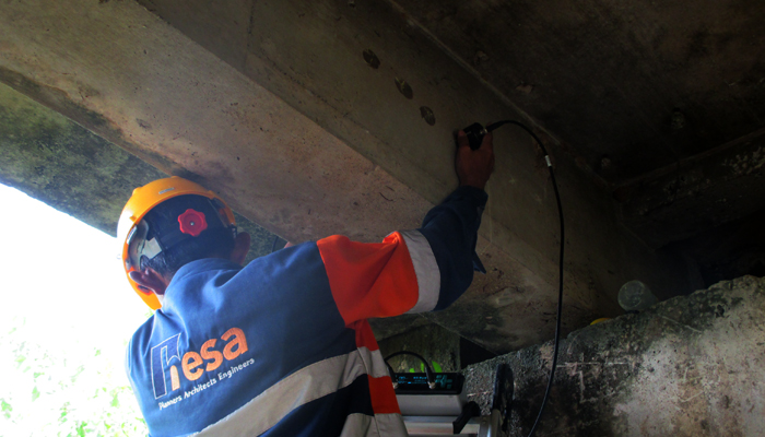 Pengujian dilakukan melakukan pengecekan terhadap integritas beton pada struktur beton LRT.