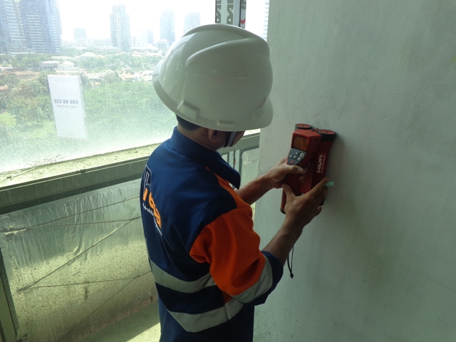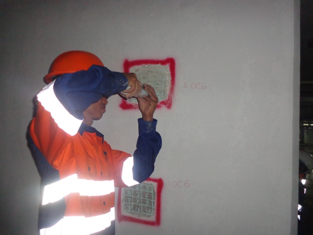 Dalam rangka memastikan sudah tidak ada lagi retak pada plat ruang panel electrical dan power listrik setelah diperbaiki menggunakan concrete filler dilakukanlah pengujian retak menggunakan alat UPVT (Ultrasonic Pulse Velocity Test) dan diverifikasi dengan Pulse Echo untuk mendapatkan visualiasi kondisi di dalam beton, sehingga menambah tingkat kepercayaan terhadap hasil uji ultrasonic.